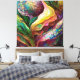 As cores giratórias se misturam, criando uma experiência visual dinâmica e mesmerizadora. Matizes ricos de verde, amarelo, cor-de-rosa e azul, entrelaçados com sotaques de ouro brilhantes