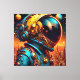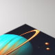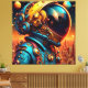 This vibrant digital art features an astronaut looking over a futuristic cityscape.
