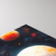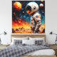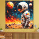 This vibrant digital art features an astronaut looking over an alien landscape.