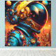 This vibrant digital art features an astronaut looking over a futuristic cityscape.