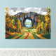 A mystical journey through a colossal stone gateway into a hidden world. This artwork blends sharp geometric abstraction with a classic landscape. The winding red path serves as a bold vector leading the eye to the portal. Rich autumn tones of ochre and gold contrast with deep architectural grays. Behind the massive arch lies a serene valley with a lake and distant fields. Every element is reduced to clean facets and powerful structural forms. The composition explores the transition between reality and the unknown. Sharp lines and flat color planes create a timeless, avant-garde aesthetic.Perfect for modern interiors seeking a balance of nature and graphic art. A symbolic representation of choosing a new path and discovering what lies beyond.