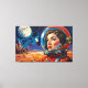 This vibrant digital art features an astronaut gazing into space.