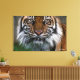 Esta imagem mostra a cabeça e o rosto de um tigre. Os tigres têm casacos cor de laranja avermelhada com faixas pretas proeminentes, barrigas brancas e manchas brancas nos seus ouvidos. Como uma impressão digital humana, nenhum dois tigres tem as mesmas marcas. Por isso, os pesquisadores podem usar padrões de stripe para identificar indivíduos diferentes no estudo de tigres na natureza. Os tigres são caçadores poderosos com dentes afiados, mandíbulas fortes e corpos ágeis. | Smithsonian e Smithsonian são marcas registradas detidas pela Sm