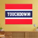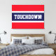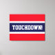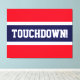 Este design de futebol esportivo apresenta um texto ousado TOUCHDOWN! dentro de uma grande faixa azul de centro marinho contra um fundo vermelho brilhante. O texto pode ser personalizado.