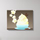 uma ilustração de uma sobremesa deliciosa de sorvete com decoração de borrachas de chocolate em uma taça azul com detalhes de orquídea baunilha em um fundo marrom © e ® Bigstock® - Todos os direitos reservados.