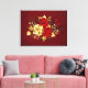 A composição de duas rosas vermelhas pintadas artisticamente e uma rosa ouro, decorada com ouro, folhas de joias sobre fundo texturizado.