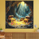 Tief verborgen in einer geheimnisvollen Höhle leuchten unzählige Goldmünzen und Schatztruhen im Licht der Sonnenstrahlen, die durch eine Öffnung in der Decke dringen. Eine Szene wie aus einem Märchen – reich an Magie, Abenteuer und uralten Geheimnissen.
