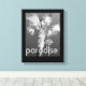 trópicos com fotos a preto e branco de palmeiras de canvas esticadas, com paraíso de texto para decoração em casa ou no escritório. Arte original e fotografia de Ann Powell sobre canvas e arte na parede. Direitos autorais da fotografia Ann Powll todos os direitos reservados.