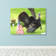 Homem Turquia exibindo suas penas na cauda em frente a uma bandeira americana