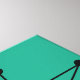 Um meio século moderno de design, com estilo retrógrado, nos anos 50, com rajadas de som sputnik contra um fundo turquesa com formas circulares.