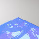 Um design abstrato com formas circulares dispersas em uma paleta de cor roxa e turquesa.