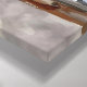 Wall art with an illustration of two horses on a snowy winter ranch with a full moon in back of them standing behind an old rustic fence.