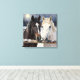 Impressão Em Tela Two Horses on a Snowy Farm Under the Moon