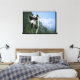 Um Panda Em um poster de árvore... tem um panda preto e branco parado no topo de uma árvore com uma vista de montanha atrás dele e um céu azul. Esta é uma bela foto... nesta Canvas.