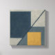 Sealed indigo square stands closed. Gray fragments circle; gold glimmers within. A diagonal line cuts tension—never resolving.