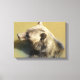 Uma vista lateral de um grande urso pardo nadando em um lago sujo.