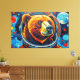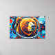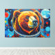 Esta impressionante obra de arte de Otis Porritt apresenta um urso em um capacete de astronauta, seu olhar direto e cativante. A pelagem do animal é representada com uma rica tapeçaria de pinceladas texturizadas em laranjas, amarelos e marrons quentes, criando um efeito vibrante e quase impasto. Azuis e roxos frios definem o focinho, contrastando com os tons flamejantes da pelagem. O visor reflexivo do capacete emoldura o rosto do urso, enquanto o fundo rodopia com pinceladas dinâmicas de azul-turquesa e azul profundo, evocando uma extensão cósmica. O meio digital captura magistralmente uma estética pictórica.