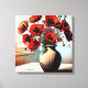 Vaso de flores. Cachorros vermelhos num vaso branco sentado numa mesa. Cartoon estilo quadrinhos bonito Poppies.