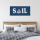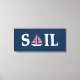 Ilustração de design de texto de vela com decoração de barco à vela em fundo azul escuro. É possível mudar a cor de fundo e adicionar uma diferente à design com sua escolha.