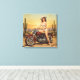 Impressão Em Tela Velha escola, Retro Pin-up Girl na moto
