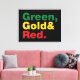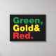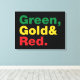 Impressão Em Tela Verde, Dourado e Vermelho.