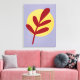 Uma silhueta de um tronco de planta vermelha com sol amarelo sobre fundo colorido de lavanda clara.