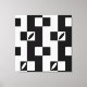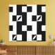 The work is composed of vertically arranged modular units structured within a strict black-and-white grid. Repetition establishes a stable rhythm, which is intentionally disrupted by embedded curved counterforms placed within select modules. These interruptions introduce contrast between rigid geometry and contained organic voids, creating visual tension without breaking the underlying system. The composition emphasizes modularity, restraint, and balance, reflecting a modernist, Bauhaus-influenced approach that prioritizes structure over decoration.
