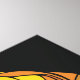 Um retrato ao estilo de vidro manchado capturando a essência da cabeça de um cão. Com tons de cor azul, amarela, laranja e ouro, esta criação artística apresenta uma abstração lúdica contra um fundo escuro.