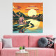 Impressão Em Tela Vintage Camping Scene Woman Kayaking
