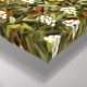 Uma tela é impressa com uma bela imagem de uma cena da natureza: Um pássaro sentado em uma cerca de tempo, flores silvestres crescendo ao redor da cerca, um fazendeiro em um trator, trabalhando sua terra, árvores com folhas e fazendas com várias cores. Arte original por W.B.