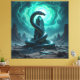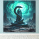 Eine mystische Schlange umschlingt einen schwarzen Monolithen inmitten einer kargen, außerweltlichen Landschaft. Ein leuchtender grüner Wirbel im Himmel verstärkt die geheimnisvolle und kraftvolle Atmosphäre. Dieses Werk verbindet Symbolik von Macht, Schutz und kosmischer Energie.