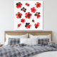 Elegant Watercolour Red, Black and White Floral Pattern on a white background canvas wall art print.
