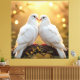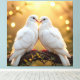 Zwei weiße Tauben, Sinnbild für Reinheit, Frieden und ewige Liebe, sitzen eng aneinander – ihre Körper formen fast ein Herz. Umgeben von sanftem Licht strahlen sie Ruhe und Harmonie aus. Ein romantisches Motiv voller Gefühl.