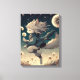 Uma brisa gentil carregar um espírito chorão de raposa através de um campo de dentes-de-leão sob um céu estrelado e iluminado. Com pelo macio, branco e expressão inocente, essa criatura encantadora parece soprar desejos em um dandelion, sua cauda grande e lisa ecoando as delicadas cabeças de semente. É um momento de magia pura e inocente, celebrando a simples beleza da natureza