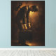 Surreal oil painting of a weary man in vintage suit & fedora, bent forward under the giant symbolic wind-up key in his back — representing the mechanical office routine, employer life as a wind-up toy, endless repetition, wasting life in the corporate machine. Warm golden cinematic light & deep moody shadows create powerful atmosphere of burnout, loss of freedom, soul-crushing monotony and existential fatigue. Perfect modern surrealism, psychological allegory, corporate critique, anti-work, shadow work or introspective wall art for offices, therapy rooms, studios, bedrooms or anyone trapped in the daily grind. High-quality print preserves rich oil texture and emotional depth.