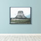 Uma pintura digital da Torre Devils e uma manada de bisontes pairando perto de um rio, com árvores espalhadas na base da torre geológica e colinas rolantes ao fundo. Esta não é uma cena real em Wyoming. Esta pintura foi feita com base em duas das minhas fotografias. Em letras brancas, no centro da pintura está "Wyoming". Nos cantos superiores está o lema estatal, "Estado da Igualdade", e o ano de Estado, "1890". A pintura tem uma borda azul escura. Imagem Copyright ©2023 Kimberly J Tilley.