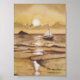 Uma cena oceânica serena em tons dourados.