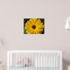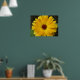 Esta bela impressão apresenta uma fotografia detalhada de um marigold amarelo com centro escuro. A fotografia foi tirada usando fotografia macro. Você pode ver todas as minúsculas gotas de água pousadas nas pétalas desta flor exquisita.