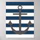Perfeito para um berçário temático náutico, com um fundo estriado azul e branco marinho e uma âncora de cinza.