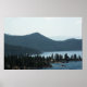 Uma fotografia do pinheiro circundante cobriu montanhas chegando ao fim no lago Tahoe.