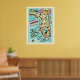 Este Mapa colorido da Flórida é dimensionado para 24x32 com borda creme e turquesa. Esta era uma imagem antiga do cartão postal, de modo que há alguma pixelização, mas acrescenta à imagem antiga e alegremente os nomes da cidade e da atração são claros. Há uma foto de perto de uma parte da imagem ampliada na coluna de mídia no lado direito da home page do compro. Mostra mais claramente como será a impressão. Temos vários tamanhos deste cartão postal antigo disponível no compro.
