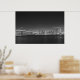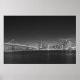 Vista da ponte de Bay e do horizonte de São Francisco à noite na Ilha do Tesouro. Fotografia excelente a preto e branco. Escolha entre vários tamanhos e opções de impressão.