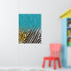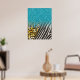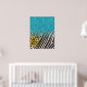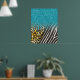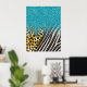 Impressão sobre o leopardo dourado de tendência feminina incrível, listras de zebra pretas, efeitos de brilho de chá azul de pavão. Impressão de imagem