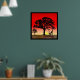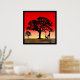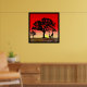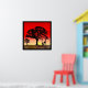 Impressão de trabalho de arte poster gráfico colorido, com um belo pôr do sol e um estudo em silhuetas, de girafas e árvores. ideia de presente de excelente.