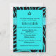 Adicione brilho e brilho selvagens ao seu Bat Mitzvah ou festa de aniversário com esta trendy glitter azul-aqua, preto e branco, brilhante FAUX (IMPRESSO), convite riscado com uma fita azul-folha azul-turquesa e um broche de diamante e joia IMPRESSOS. Se você precisar de algum item correspondente neste design ou se precisar de ajuda para personalizá-lo com suas informações, envie um e-mail para niteowlstudio@gmail.com. ****NOTE que tudo será impressão como aparece no seu monitor. Não verei seu convite assim que você o solicitar e Zazzle não editará nada.