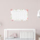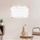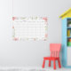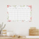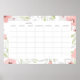 Um grande calendário mensal em formato de pôster. Os desenhos apresentam os dias da semana em um formato mensal cercado por uma bela borda floral em aquarela.