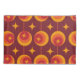 Este é um elegante meio século clássico de estrelas atômicas modernas em círculos antigos em laranja, tangerina e vermelho sobre fundo burgundy. É uma caixa de travesseiro para o seu quarto.