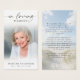 These personalized memorial cards pair a softly faded photo with a tranquil beach backdrop and heartfelt remembrance wording, creating a peaceful tribute to a life cherished. The gentle shoreline scene evokes calm, reflection and enduring love, while the elegant typography keeps the focus on honoring meaningful memories. Ideal for funeral services, memorial gatherings or Celebration of Life events, these cards offer a comforting keepsake for family and friends to hold close long after the service has ended. Small and portable size of 3.5x2" (wallet-sized). Personalization makes these cards unique.