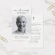Keep the memory of a loved one close with this custom personalized prayer card featuring one treasured photo, the sentiment IN LOVING MEMORY, name and dates on the front and an editable heartfelt remembrance message accented with a simple cross on the back. With its simple yet elegant classic black and white design and modern script typography, it makes a meaningful keepsake to share at a funeral, memorial service or Celebration of Life and offers comfort and a lasting tribute for family and friends. The sample shows a B&W photo--if uploading a color photo that you want B&W, you can use the B&W filter in the EDIT menu. Its small and portable size of 3.5x2" (wallet-sized) makes it convenient for loved ones to carry it with them as a reminder of your loved one’s life and spirit. Personalization makes each card unique.