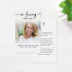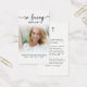 This elegant memorial prayer card features a modern script “In Loving Memory” design paired with a personal photo and an editable comforting prayer accented by a simple cross symbol. The clean white layout and refined typography create a timeless keepsake suitable for funerals, memorial services and celebration of life gatherings. Designed to honor a life with grace and warmth, this card offers a meaningful way for family and friends to remember and reflect. Its small and portable size (3.5x2") makes this keepsake card convenient to carry as a reminder of their life and spirit. Personalization makes these cards unique.
